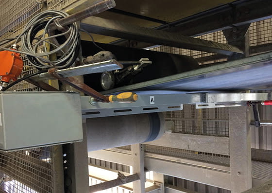 > Escáner de la trama metálica de la banda transportadora, analizando el estado de los cables y del empalme.